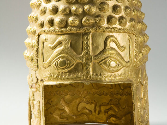 Brățară spiralică cu plăci terminale decorate cu palmete și protome zoomorfe. Obiectul aparține unei categorii de podoabe feminine ce aveau totodată și rol de piese de prestigiu – cu totul emblematică pentru civilizația dacică din perioada ei clasică de dezvoltare – o creație originală locală inspirată de modele elenistice. A fost lucrat dintr-o singură tijă de aur, prin martelare, gravare și ștanțare. Brățări similare se realizau cel mai des din argint. Exemplare de aur sunt cunoscute pentru moment exclusiv din zona Munților Orăștiei, din apropiere de zona sacră de pe Dealul Grădiștii.
