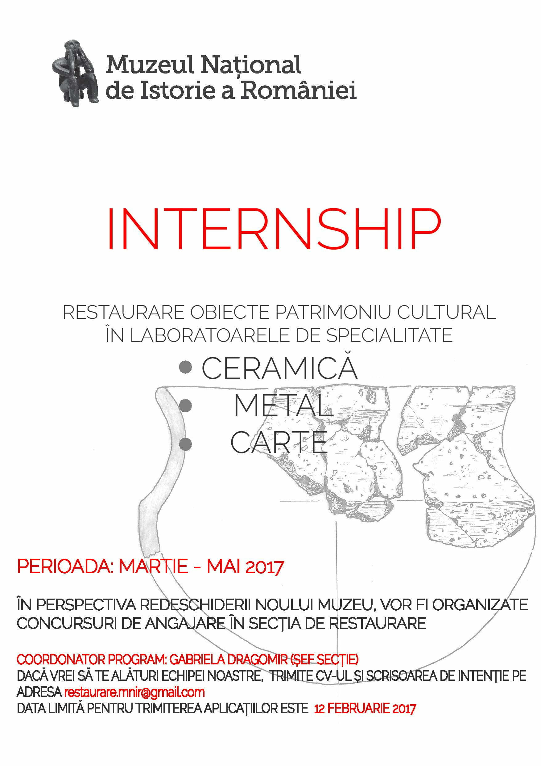 Muzeul Național de Istorie a României inițiază un stagiu de internship în cadrul Secției Restaurare, în perioada martie – mai 2017. Stagiul se va desfășura...