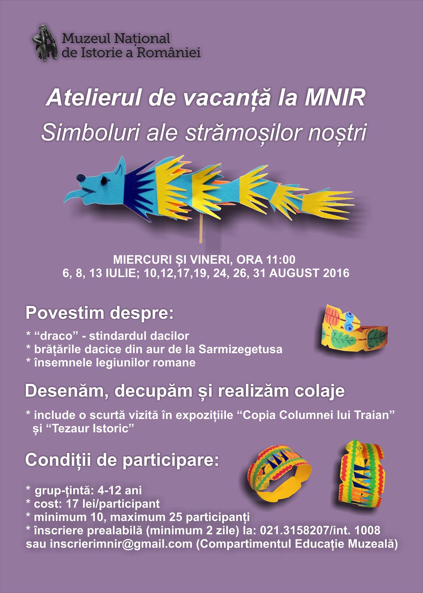 Muzeul Național de Istorie a României (MNIR) desfășoară în perioada vacanței de vară a școlarilor atelierul educativ şi de creaţie intitulat „Simboluri ale strămoșilor noștri”,...
