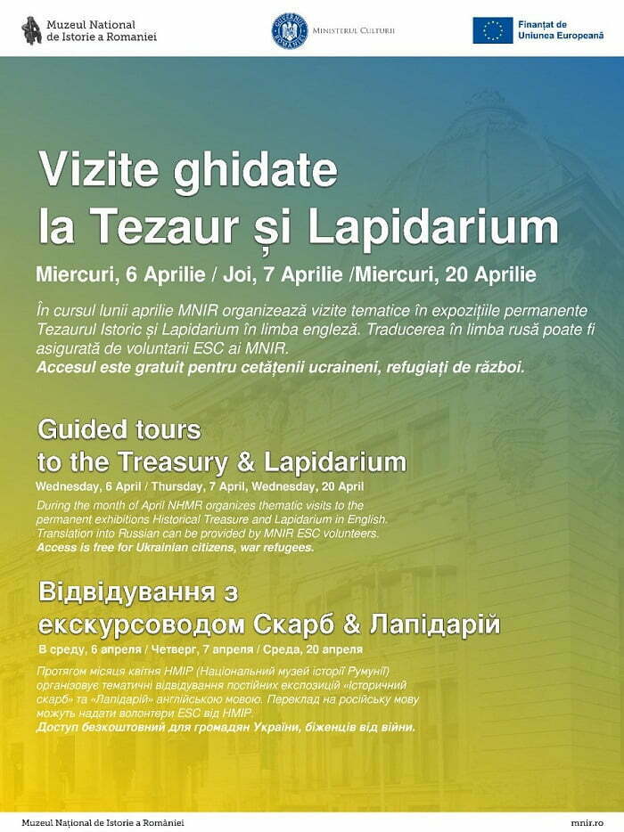 Începând cu luna aprilie Muzeul Național de Istorie a României va organiza vizite ghidate la expoziția permanentă pentru vizitatorii ucraineni, refugiați de război. Ghidajul se...