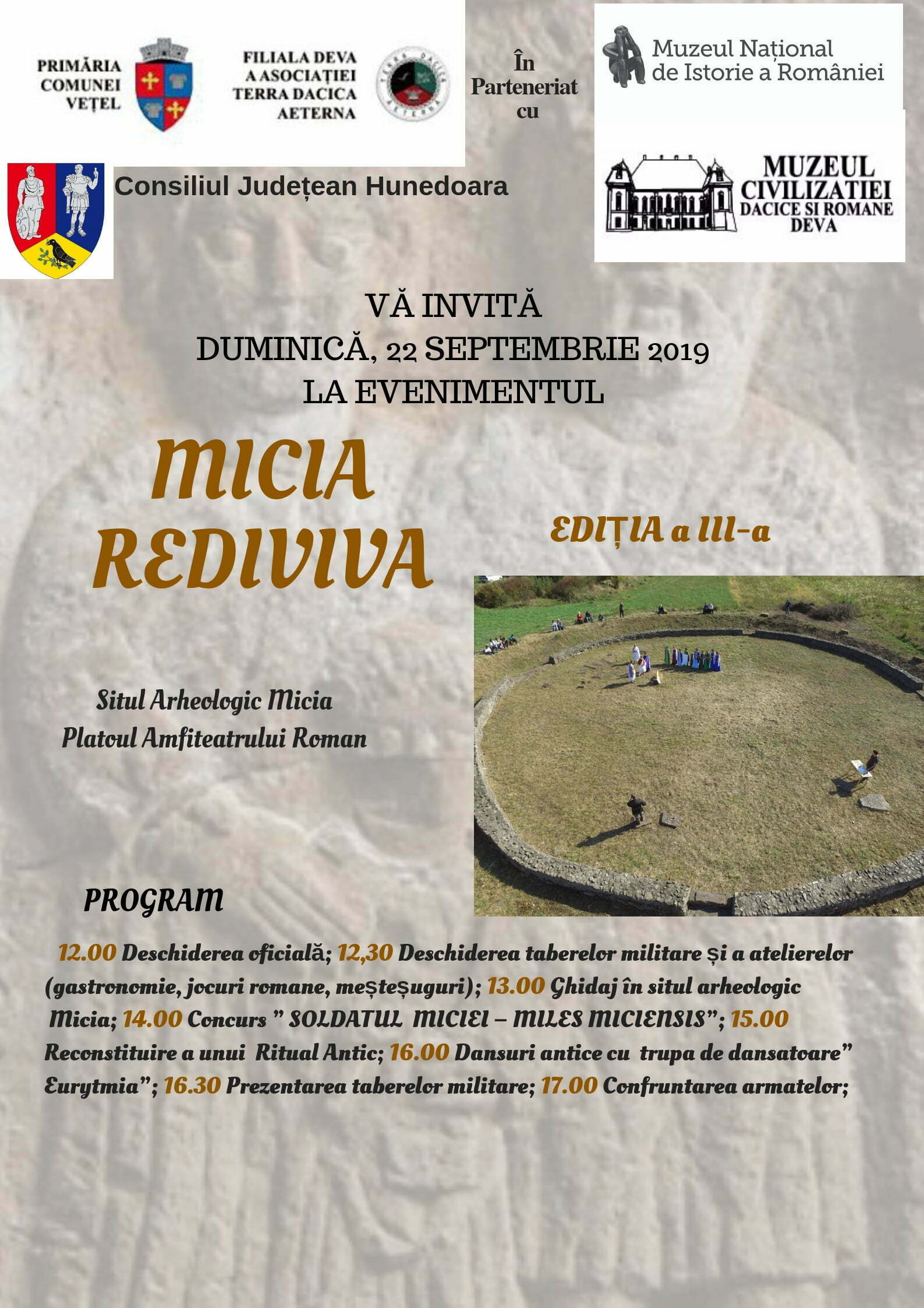 Duminică, 22 septembrie 2019, în com. Vețel, jud. Hunedoara, pe platoul Amfiteatrului Roman din cadrul sitului arheologic de la Micia, se va desfășura a treia...