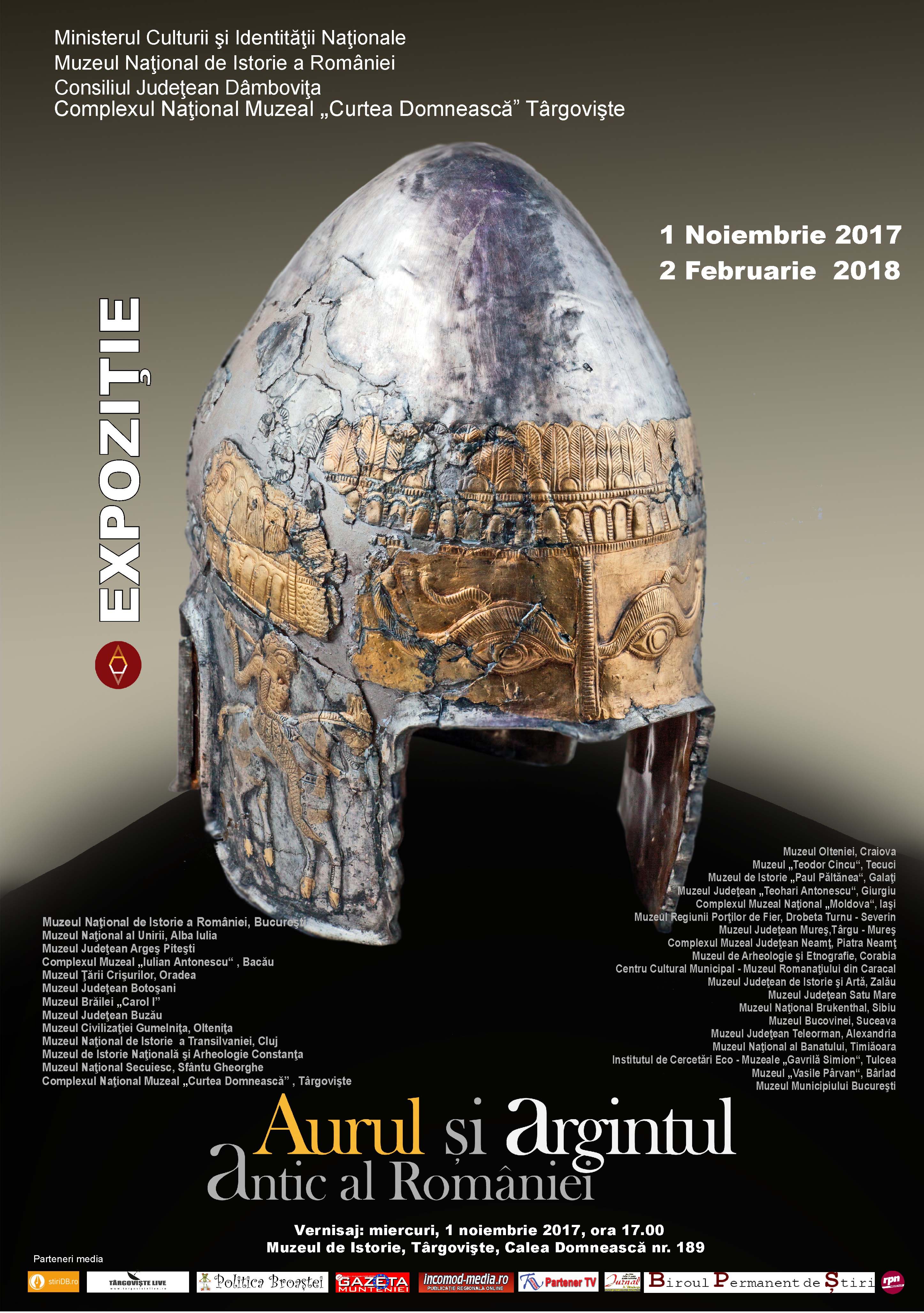 În perioada 1 noiembrie 2017 – 2 februarie 2018, expoziția temporară itinerantă „Aurul și argintul antic al României” va fi prezentată la Muzeul de Istorie...