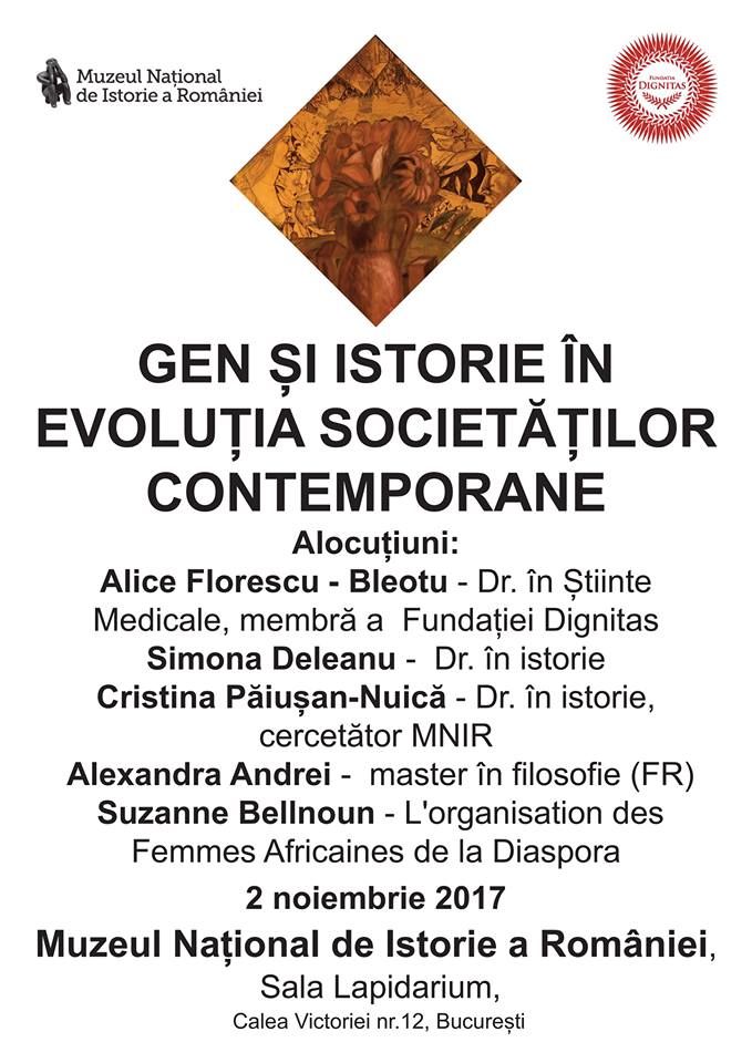 Muzeul Național de Istorie a României și Fundația Dignitas organizează joi 2 noiembrie, ora 16:00, masa rotundă cu tema „Gen și Istorie în evoluția societăților...
