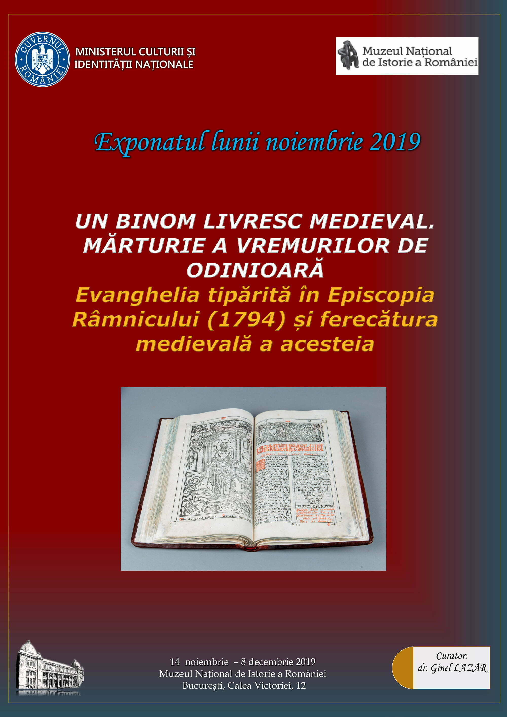 UN BINOM LIVRESC MEDIEVAL MĂRTURIE A VREMURILOR DE ODINIOARĂ Evanghelia tipărită în Episcopia Râmnicului și ferecătura medievală a acesteia Exponatul lunii noiembrie 2019, la Muzeul...