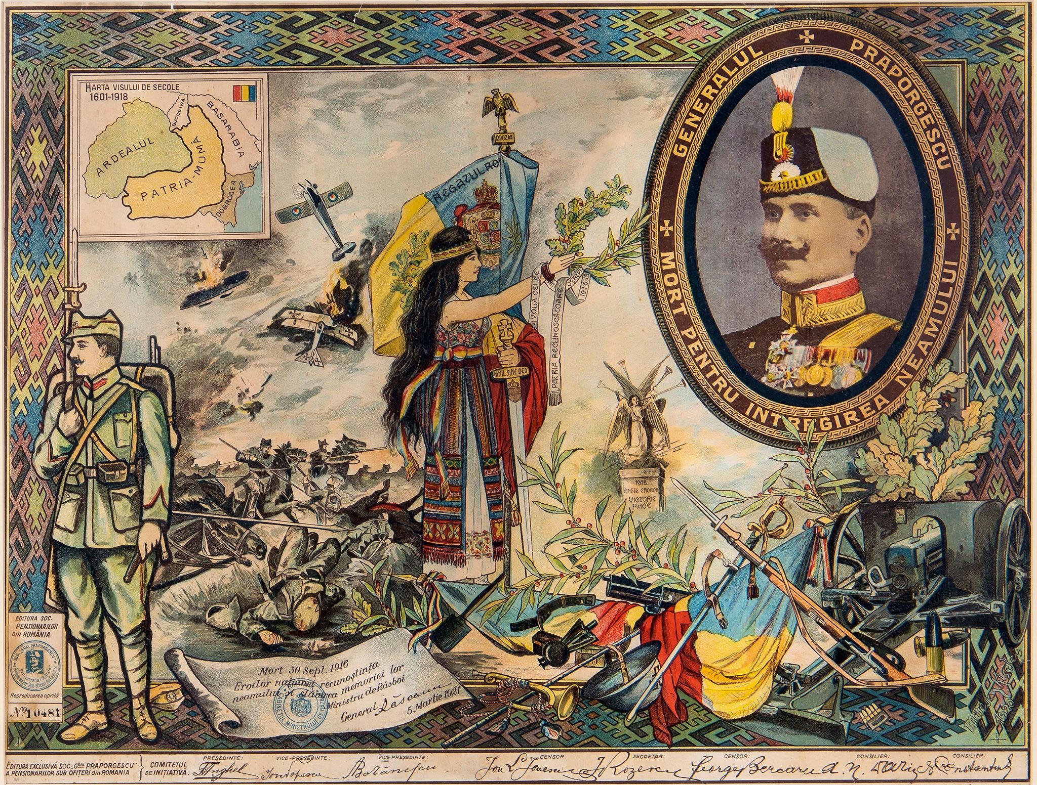 Diploma emisă de Societatea „General Praporgescu” la începutul sec. XX, pentru glorificarea eroilor români din timpul Primului Război Mondial