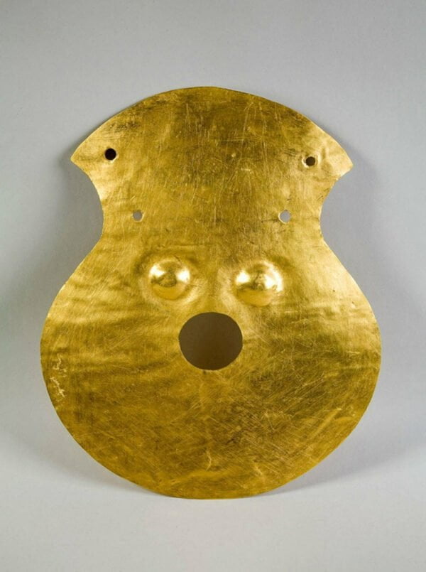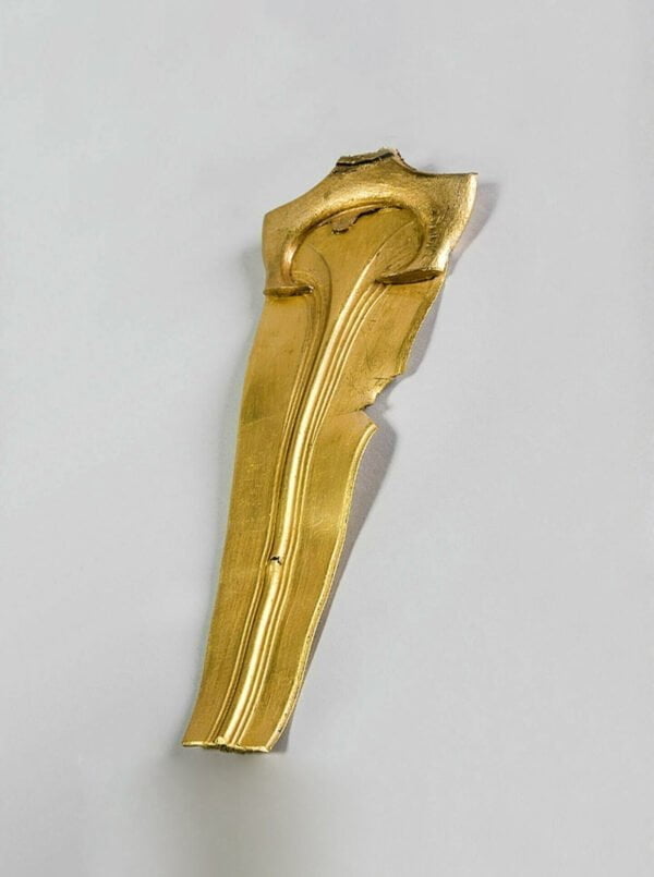♦ Epoca bronzului a însemnat o perioadă de transformări importante în economie, organizare socială şi în viaţa spirituală. Afirmată cu deosebire în mileniul al II – lea a. Chr., în perioada mijlocie şi târzie a epocii bronzului, creaţia meşterilor aurari din spaţiul nord-dunărean şi din Carpaţi este atestată de numărul mare al descoperirilor – peste 200 până în prezent – definitorie fiind şi marea varietate tipologică a artefactelor pentru stadiul atins de orfevrărie în această perioadă. În primul rând se situează însemnele de autoritate ilustrând rolul aristocraţiei în societate. În această categorie se evidenţiază armele de ceremonie. Apoi, se remarcă vasele de ceremonie rezervate aristocraţiei sau destinate libaţiilor consacrate cultului soarelui, dominant în acea perioadă. În fine, categoria obiectelor de podoabă, cea mai variată şi numeroasă, cuprinde diademe brăţări şi mărgele, falere şi inele de buclă, pandantive, verigi, inele cilindrice sau spiralice, ace de păr.