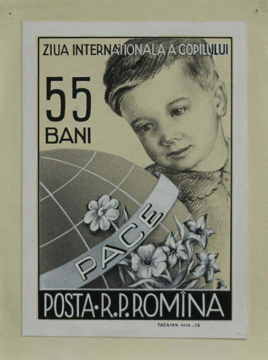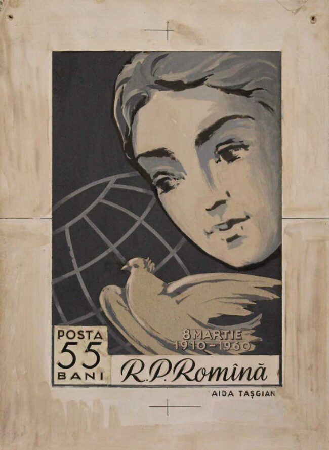 Proiectul expozițional reprezintă un omagiu adus contribuției femeilor la istoria artei și cea a filateliei românești, la confluența cărora se regăsește Aida Tasgian (1936-2014), artistă de origine armeană și una dintre puținele machetatoare de mărci poștale românești. A urmat cursurile Școlii Medii de Artă Plastică din București, pe care a absolvit-o în anul 1954. În același an, s-a angajat la Fabrica de Timbre, unde a lucrat ca graficiană și specialistă în gravură și cromogravură. De-a lungul carierei sale în acest domeniu preponderent declinat la masculin, a machetat 319 timbre pentru 80 de emisiuni. Recunoașterea pentru activitatea sa în machetarea mărcilor poștale a venit odată cu participarea la concursurile de profil, fiind distinsă cu premii pentru un număr semnificativ de timbre și emisiuni pe care le-a realizat.